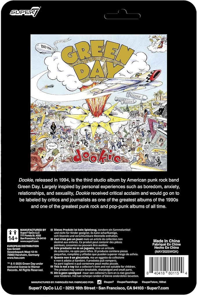 If you’re flipping through TV channels, nothing chases the boredom away like suddenly seeing Dookie Dog! He’s arrived as a ReAction Figure, inspired by Green Day’s Longview music video. This 3.75” scale collectible comes with a cream pie and dog turd accessories. The blister card packaging is influenced by the cover art for Green Day’s critically acclaimed album, Dookie (1994), the third studio album this American punk rock band made. Get motivated to set the stage in your music collection for this must-have collectible.