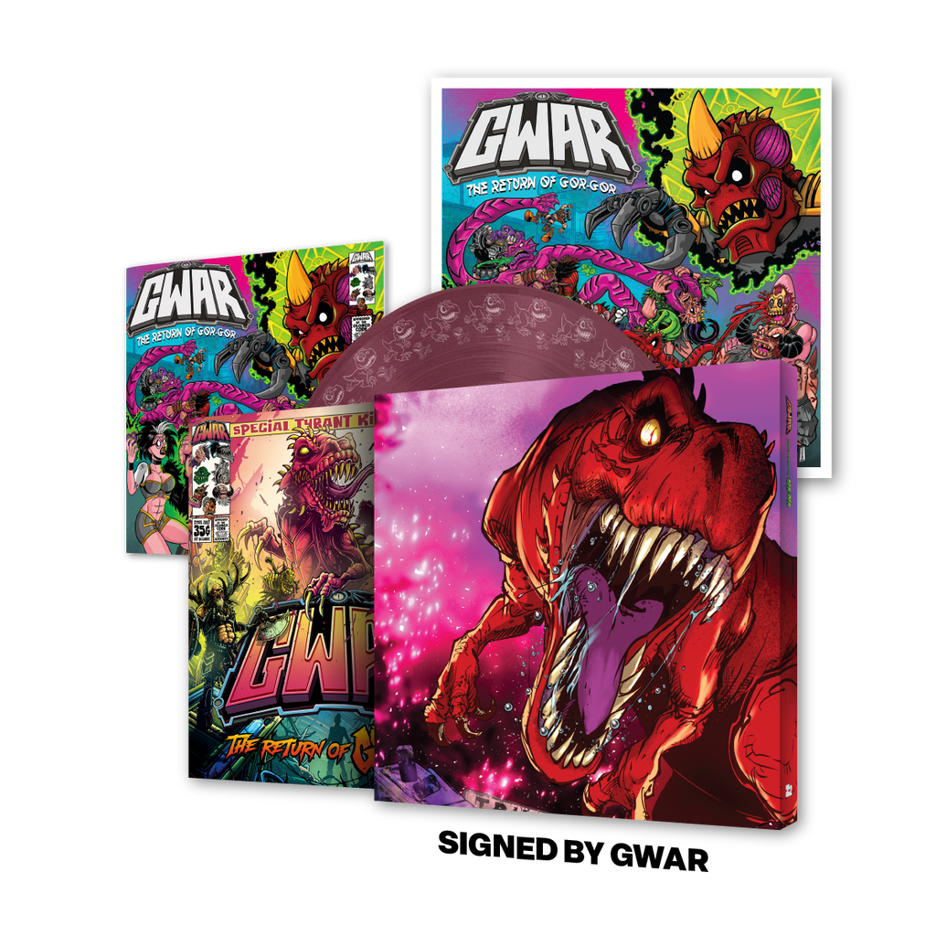 Gor Gor Returns! This release features 3 brand new GWAR songs, a new 32 page comic, and 4 live songs from their most recent tour. It includes immediate download of all pre-release songs and the full album on release day.