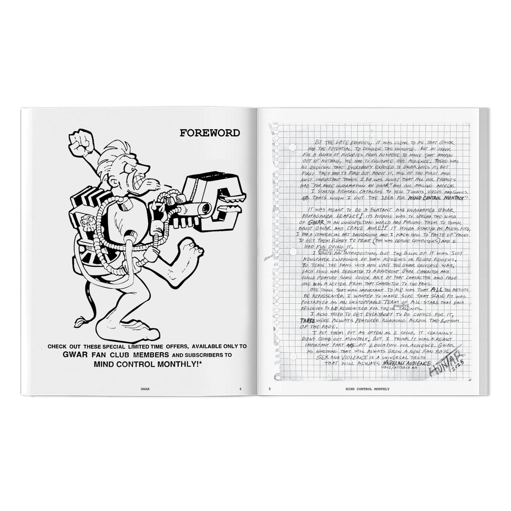 Mind Control Monthly was conceptualized and put together by Hunter Jackson / Techno Destructo – founding member of GWAR. It was meant to be a blatant GWAR propaganda leaflet, with the purpose of spreading the word of GWAR to an unsuspecting world and forcing them to think about GWAR and crave more!