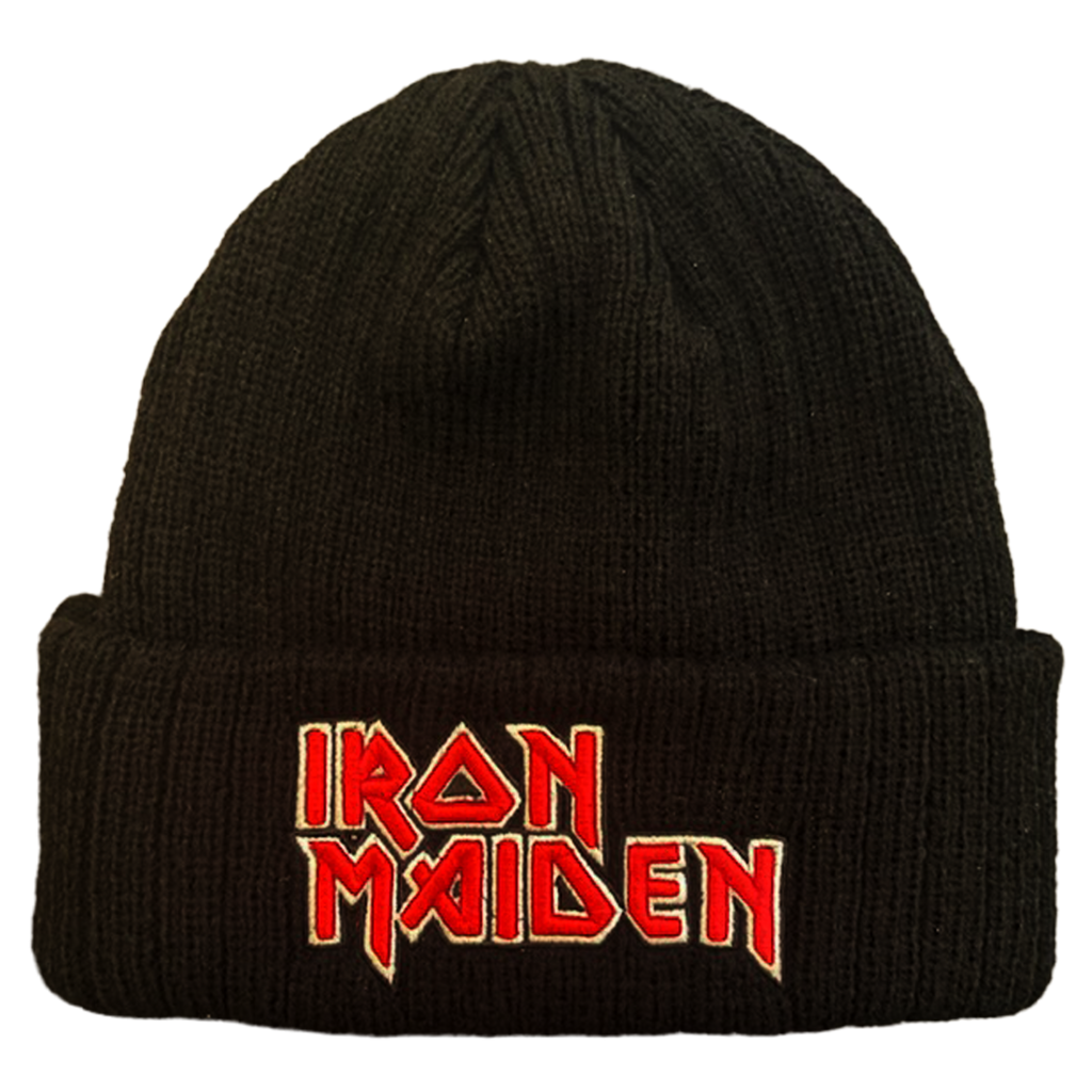 IRON MAIDEN EMBROIDERED LOGO 3X1 RIBBED BLACK ACRYLIC KNIT HAT/OSFM