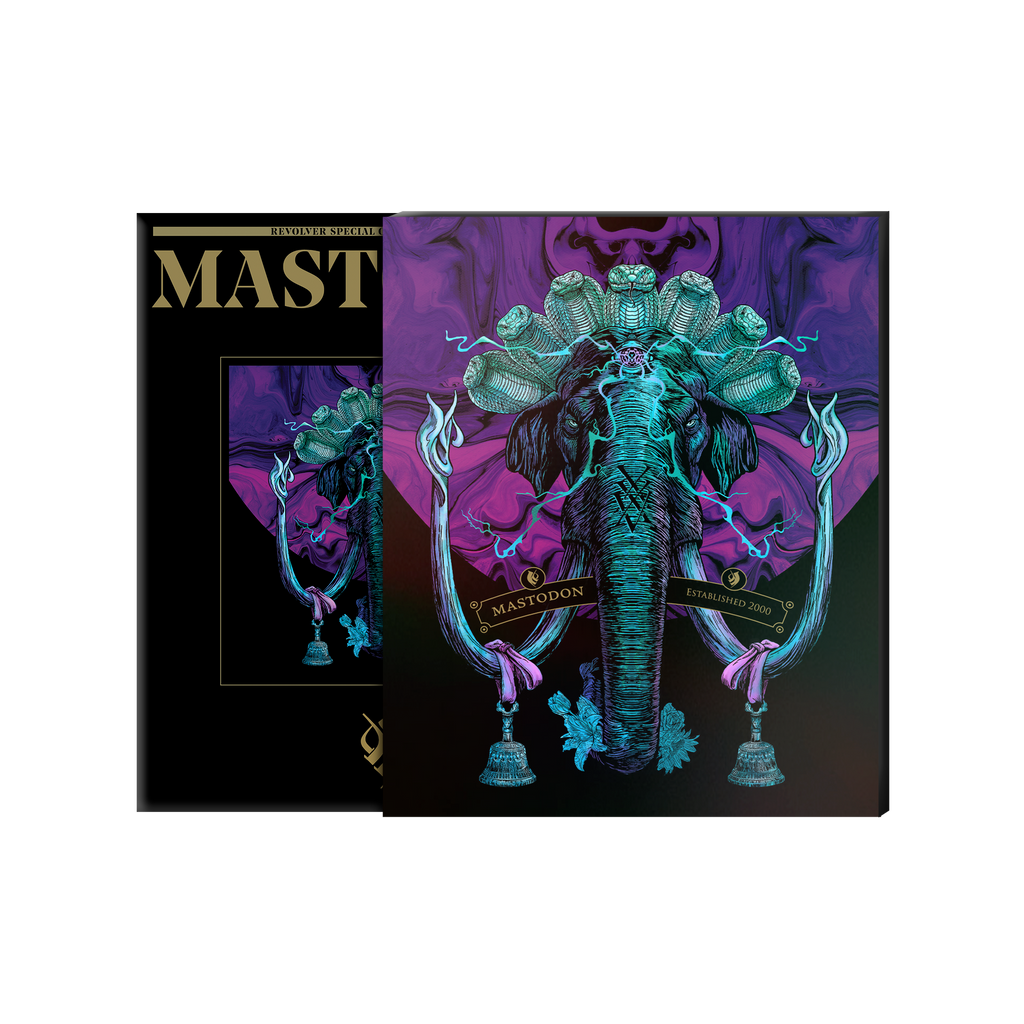 The deluxe special collector’s issue is packaged inside a durable, numbered slipcase. With a foiled cover, the Paul Romano illustration (visual artist and longtime Mastodon collaborator), titled “Memento Vivre (XXV),” was commissioned for this special collector’s issue to celebrate Mastodon’s 25th anniversary.