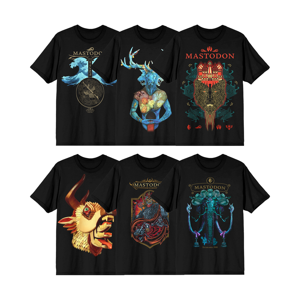 Plus, all six T-shirts designs (exclusive anniversary, Leviathan-era, Crack the Skye-era, Blood Mountain-era, The Hunter-era, and Emperor of Sand-era), the limited-edition, flocked black light poster, and exclusive slipmat.
