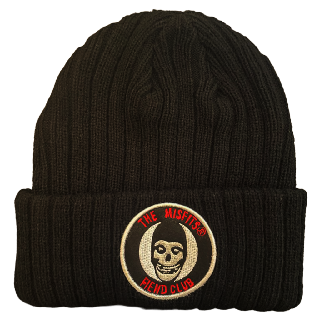 MISFITS EMB.PATCH LOGO RIBBED BLACK ACRYLIC KNIT HAT