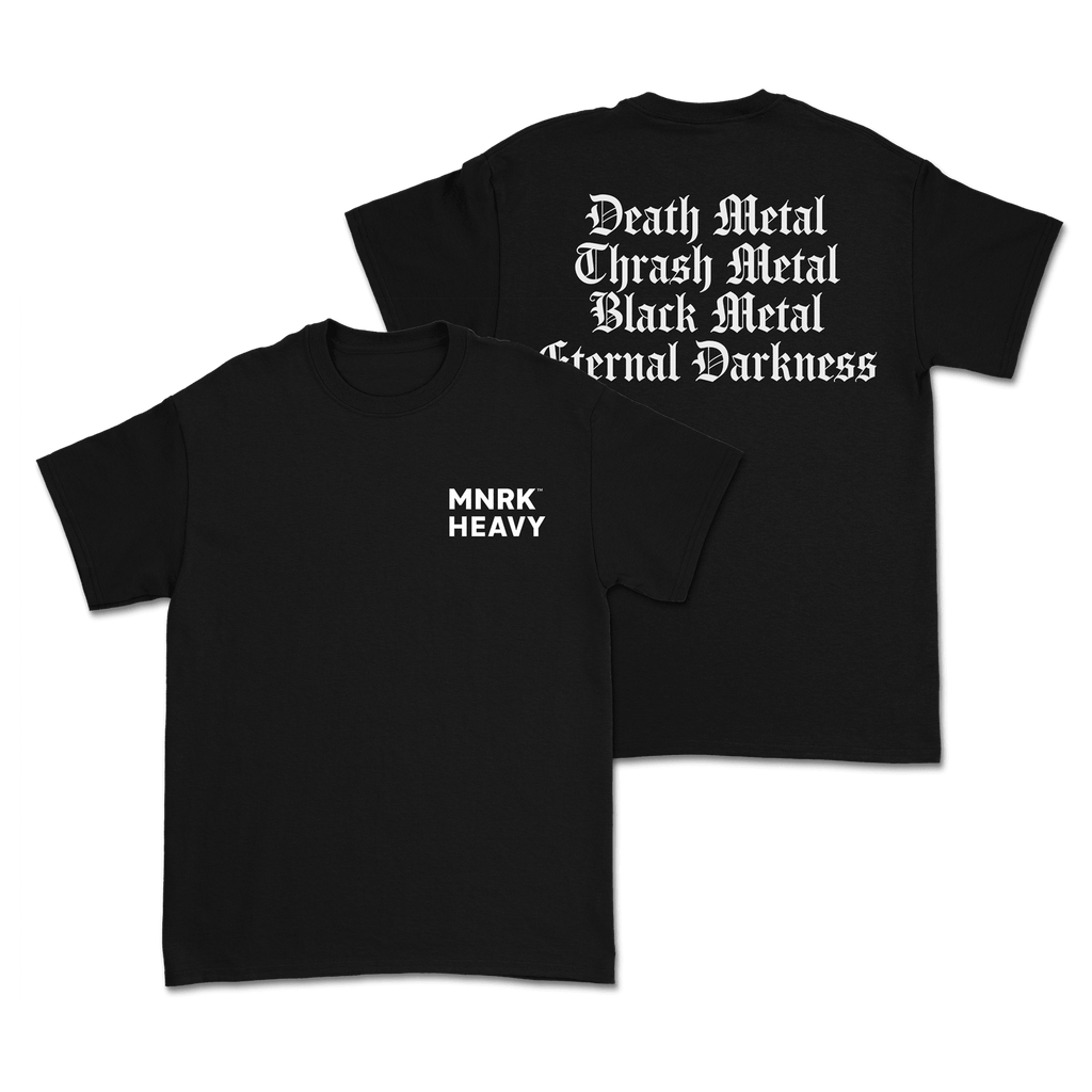 Are you a purveyor of eternal darkness? So are we. The MNRK Heavy team brings you the perfect tee shirt to greet the day alongside the most extreme metal genres.