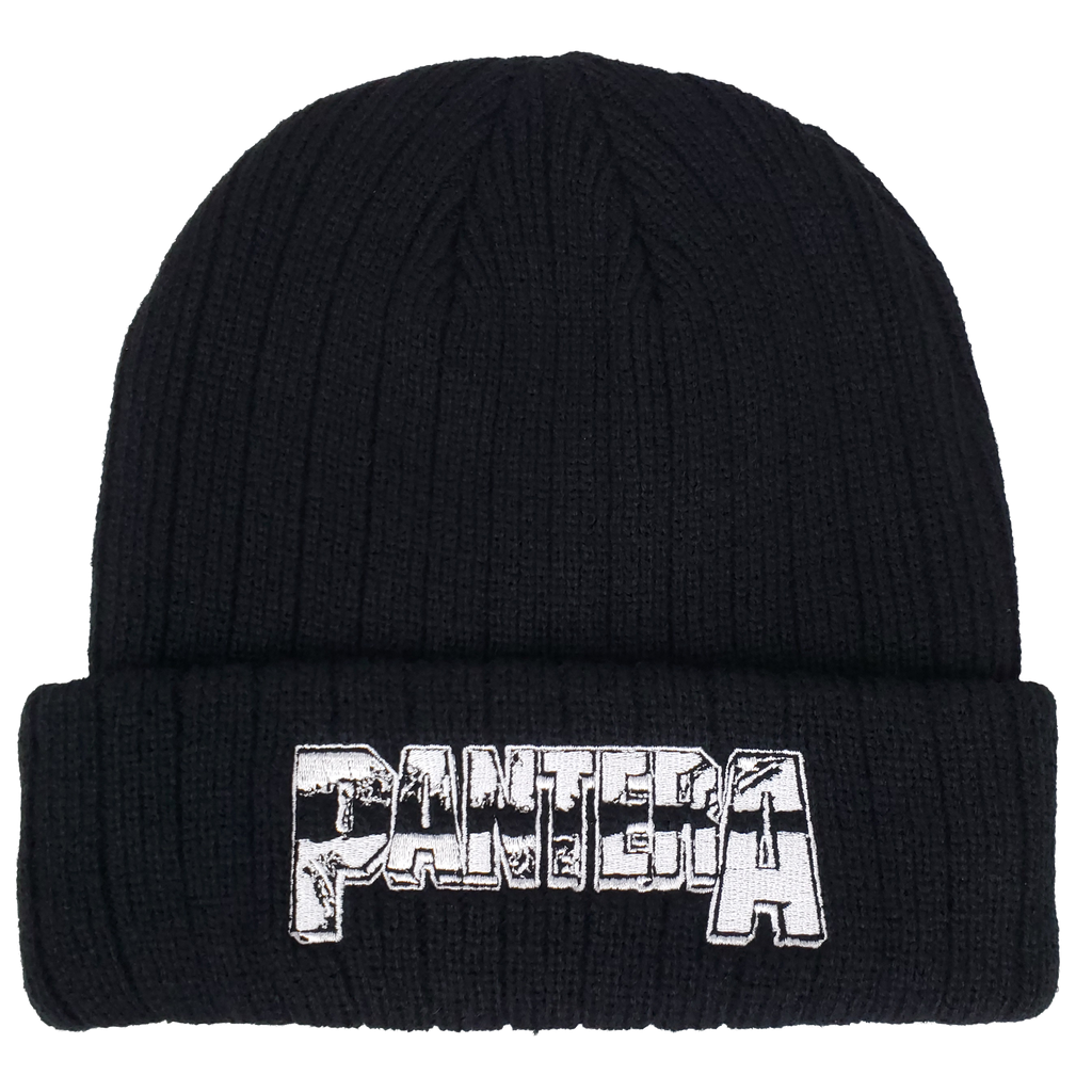 PANTERA EMBROIDERED LOGO RIBBED BLACK ACRYLIC KNIT HAT
