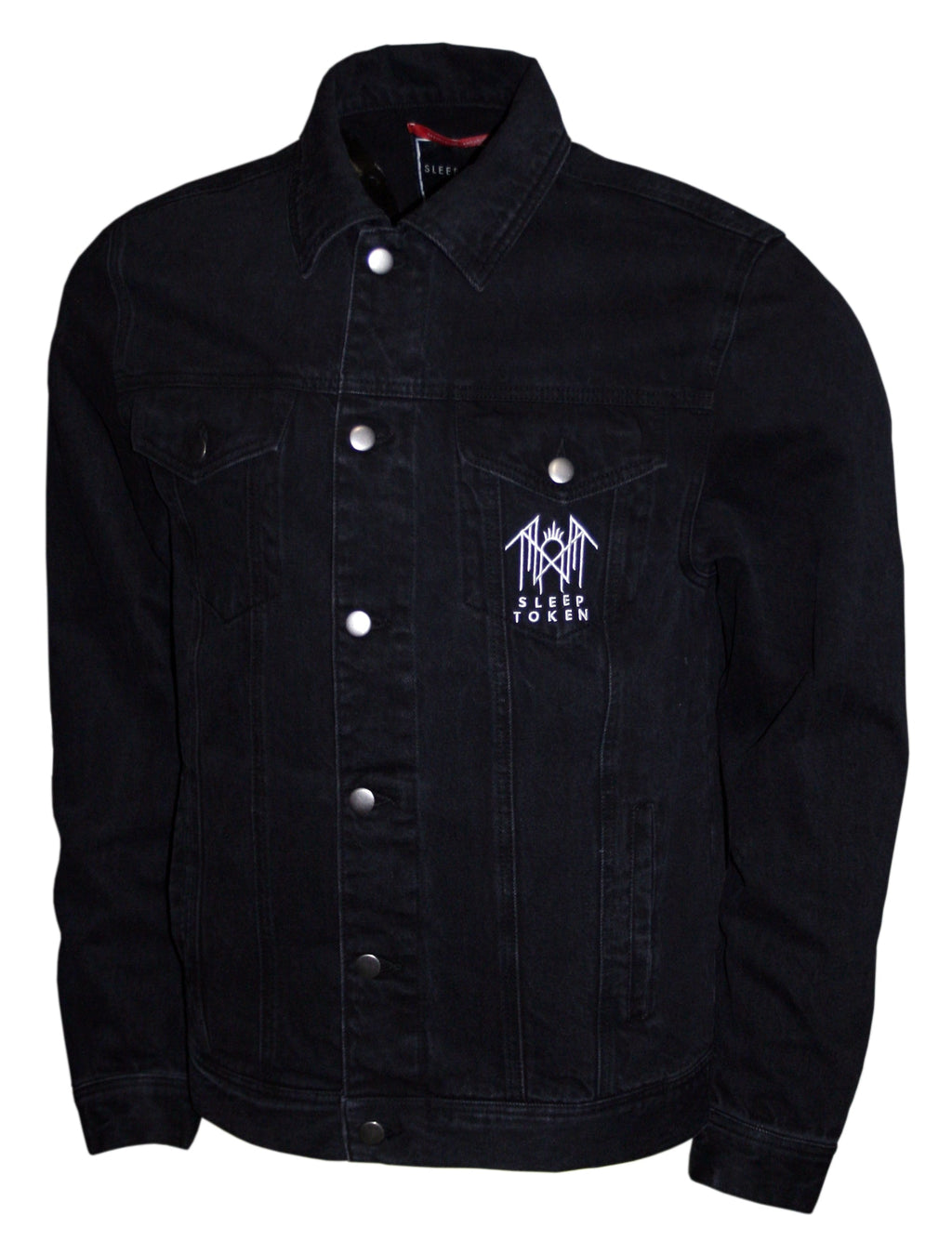 SLEEP TOKEN BLACK DENIM JACKET WHITE EMBROIDERY LOGO