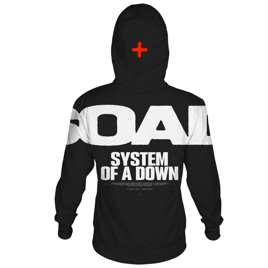 SYSTEM OF A DOWN OVERSIZED LOGO FRT/BACKLEEVE BLACK HOODIE